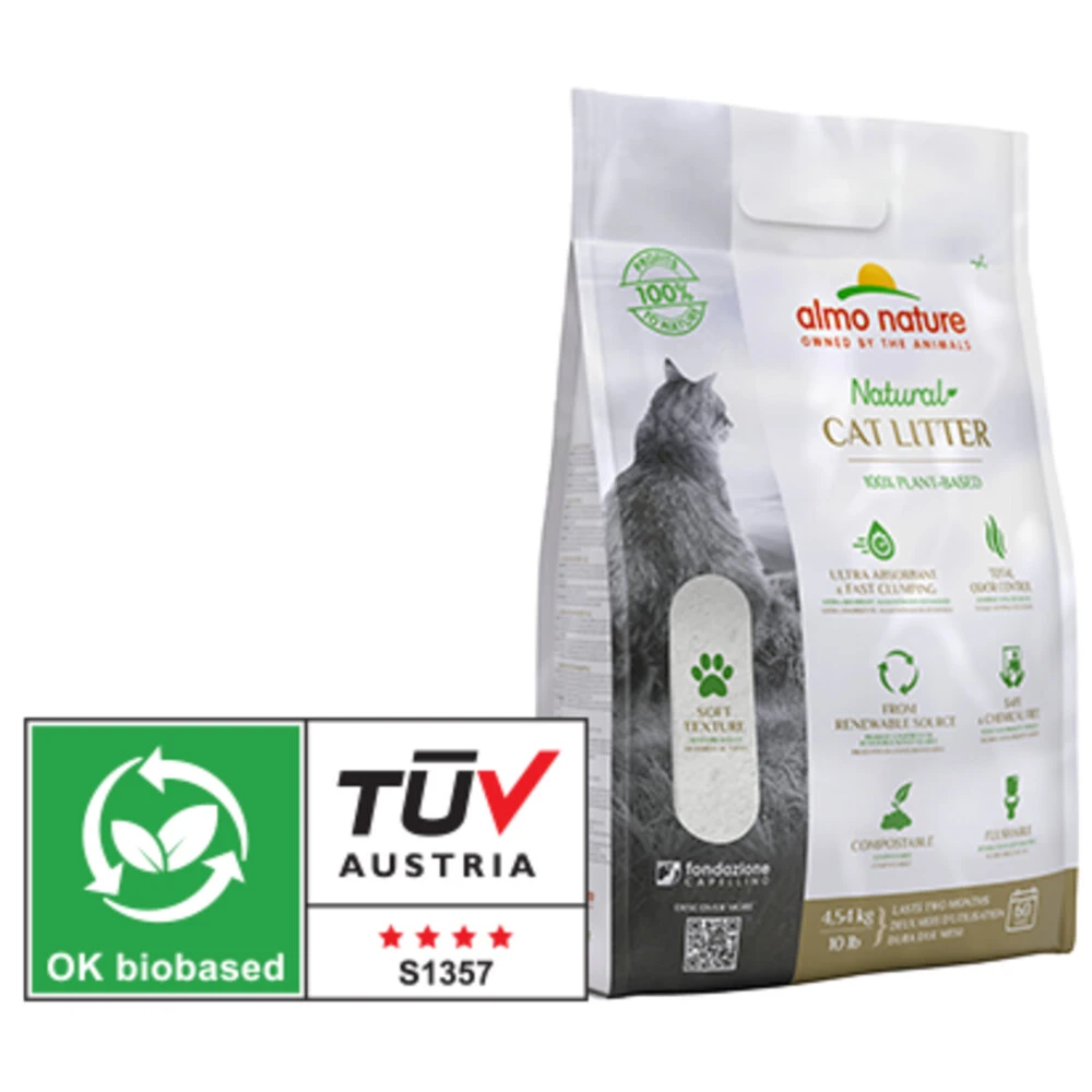 Almo Nature KattenbakvullingAlmo Nature kattenbakvulling is een volledig natuurlijke, biologisch afbreekbare, composteerbare en doorspoelbare kattenbakvulling gemaakt van plantaardige vezels. Het zetmeel in de plantaardige vezels produceert snel klonten en de enzymen neutraliseren de geur. De kattenbakvulling is vrij van stof, silica, synthetische chemicaliën en klei. Het biedt uitstekende bestrijding tegen geurtjes en het is de geconcentreerde kracht van plantaardige vezels die ervoor zorg