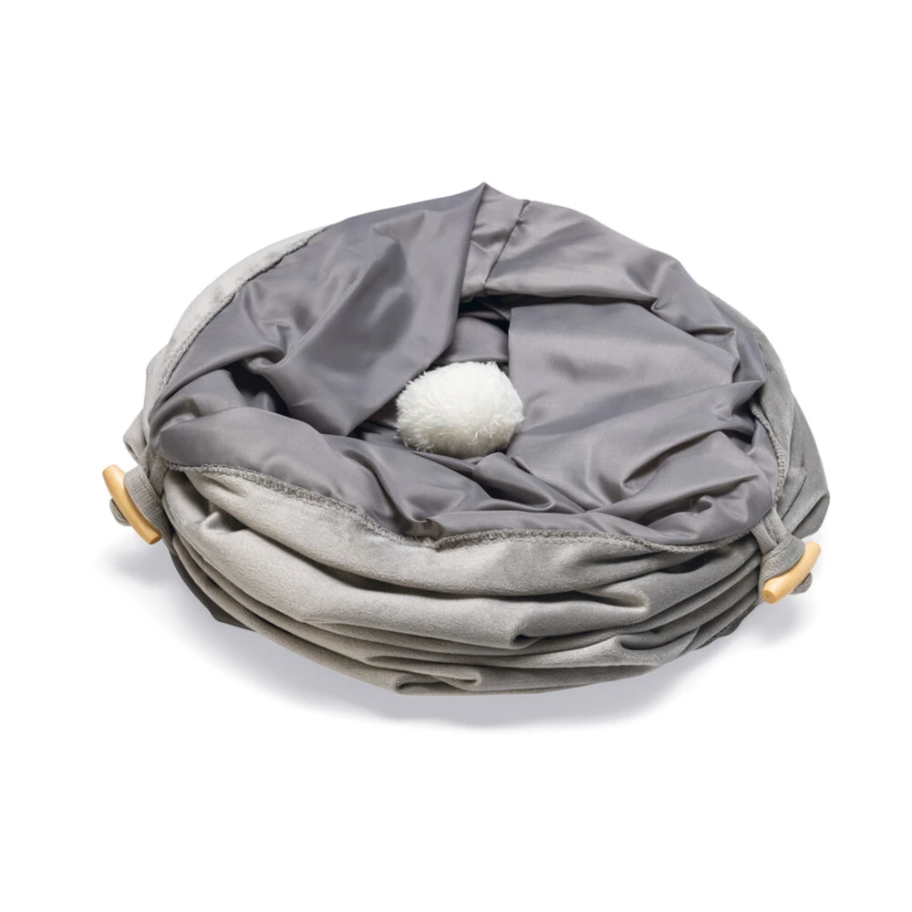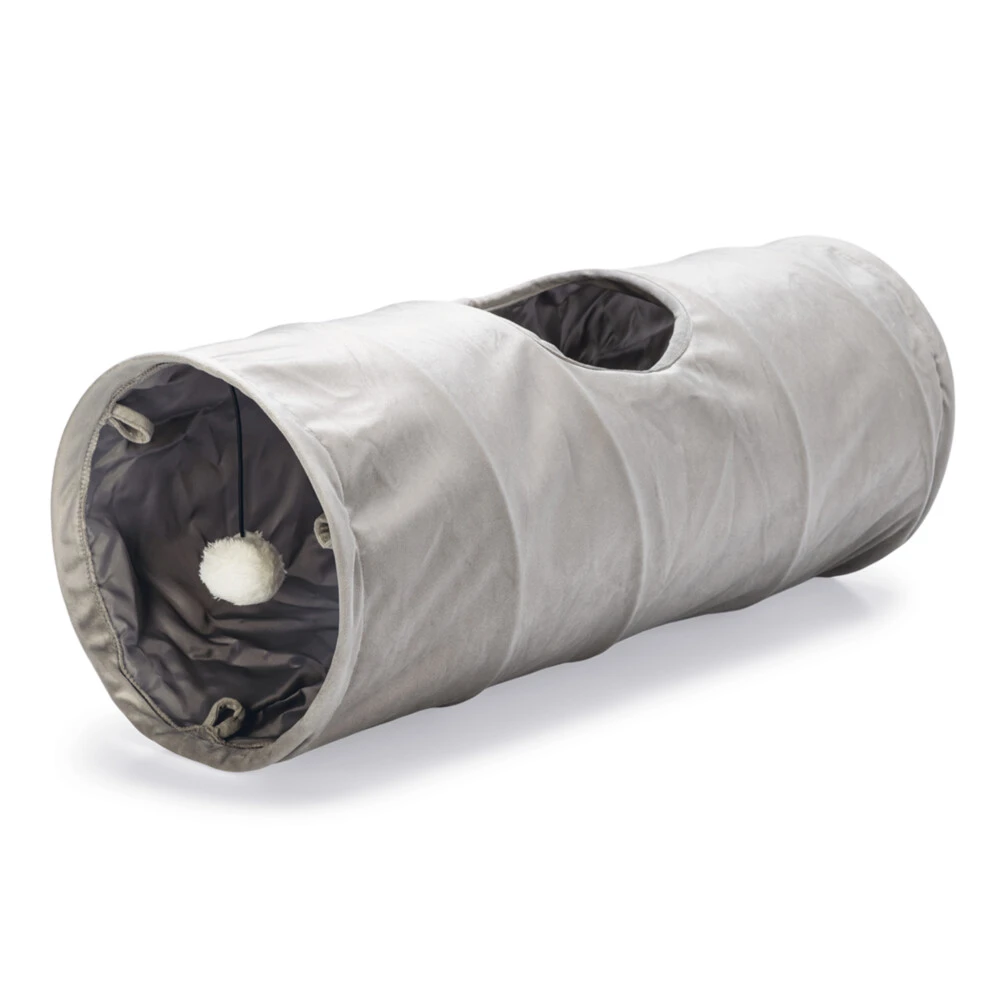 Designed by Lotte Kattentunnel Cylla GrijzeDesigned by Lotte Kattentunnel Cylla Roze is een leuke en avontuurlijke speeltunnel voor jouw kat. De tunnel is gemaakt van zacht pluche en heeft een licht grijze kleur, waardoor het een schattige uitstraling heeft. De tunnel is lichtgewicht en gemakkelijk op te vouwen, zodat je het gemakkelijk kunt opbergen. Jouw kat kan door de tunnel kruipen, spelen en zich verstoppen, waardoor het een leuke manier is om hun natuurlijke instincten te stimuleren.Gemaa