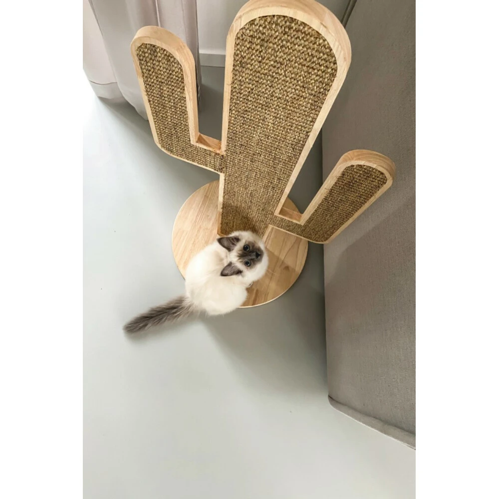 Designed by Lotte Krabpaal Hout Cactus OzeMisschien ken je de immens populaire Designed by Lotte Cactus krabpaal al? Daar hebben we nu een variant op, namelijk de Designed by Lotte Cactus Oze Krabpaal. Deze krabpaal is net een beetje anders, doordat deze cactus plat is in plaats van rond. Het leuke van deze krabpaal is, dat er aan beide kanten kan worden gekrabd en dat de krabpaal mooi staat in ieder interieur!Gemaakt van houtVoorzien van een sisal mat